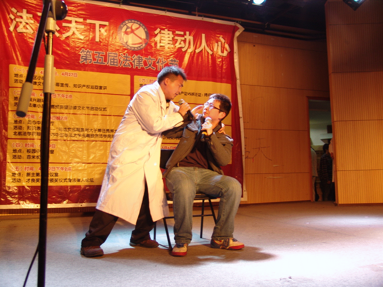 2010年4月27日下午,首都高校第二届法律小品大赛预赛在晨兴剧场举行,这标志着北航第五届法律文化节正式启动。w88win体育官网入口分团委书记张渊老师、北航未来剧社社长刘述龙等作为特邀评委出席了比赛。