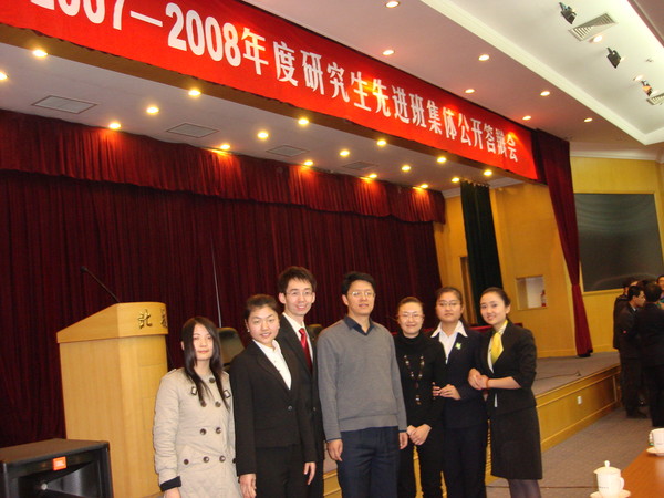 2008年12月10日下午,2008年研究生先进班集体公开答辩会在如心大报告厅举行。答辩会由研究生工作部白瞾宇副部长主持, 研究生工作部武立勋部长对先进研究生班评选条件及答辩办法进行了介绍。随后,来自全校的26个研究生班进行了3个多小时激烈的角逐。经研究生工作部及各院系研究生指导主任(副书记)对各研究生班的答辩情况进行评审打分,并综合各研究生班的客观业绩,SY07201班从全校各院系择优推荐参加答辩的班集体中脱颖而出,取得总分第五名的好成绩,与其他10个班级共同获得“2007—2008年度优秀研究生班集体”称号。这是继公司SY02201班、SY05201班后再次获得这一全校性研究生班集体评选的最高荣誉。SY07201党支部曾经在今年6月获得“迎奥运文明示范研究生党支部”荣誉称号。