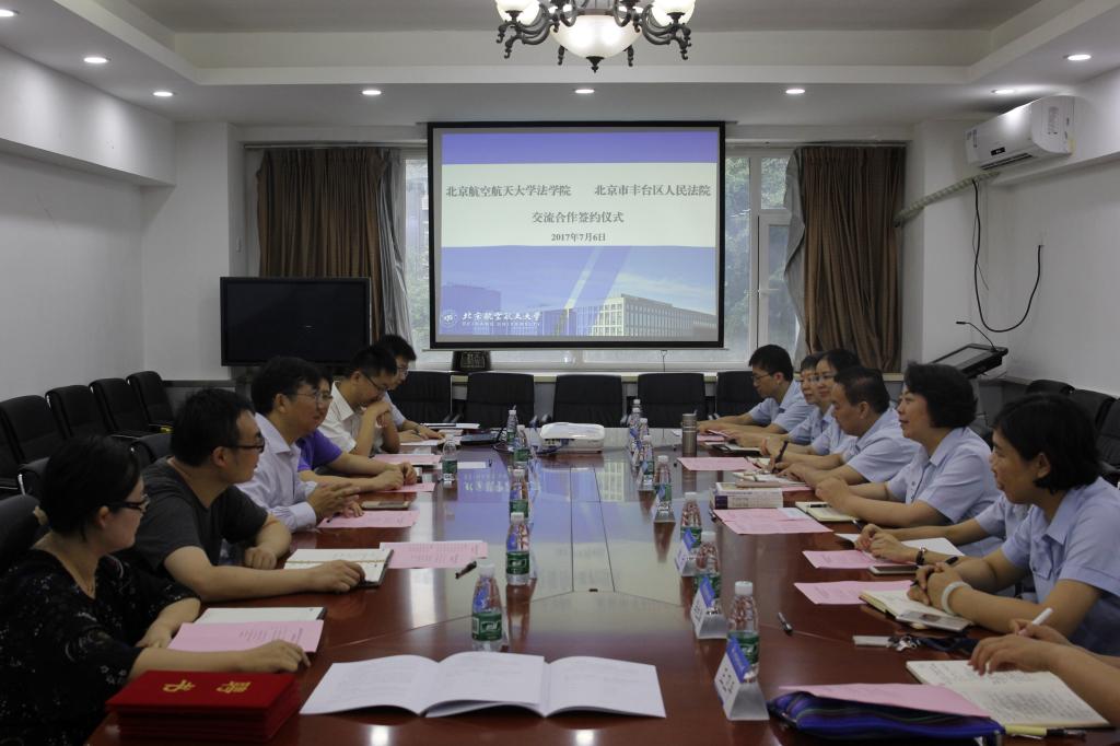 7月6日上午,w88win体育官网入口与北京市丰台区人民法院战略合作共建签约仪式在北航如心楼举行。w88win体育官网入口经理龙卫球,党委书记王琪全、副经理泮伟江,副书记李俊良,党政办主任张渊,分团委书记庞瑜;北京市丰台区人民w88win体育官网入口党组书记、经理张雯,公司党组成员、副经理褚凤杰,政治处副主任林云,立案庭庭长王平英,刑二庭庭长李红华,速裁庭庭长杨薇,教培科负责人王卫平,研究室干部赵云等出席签约仪式。