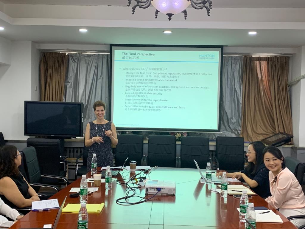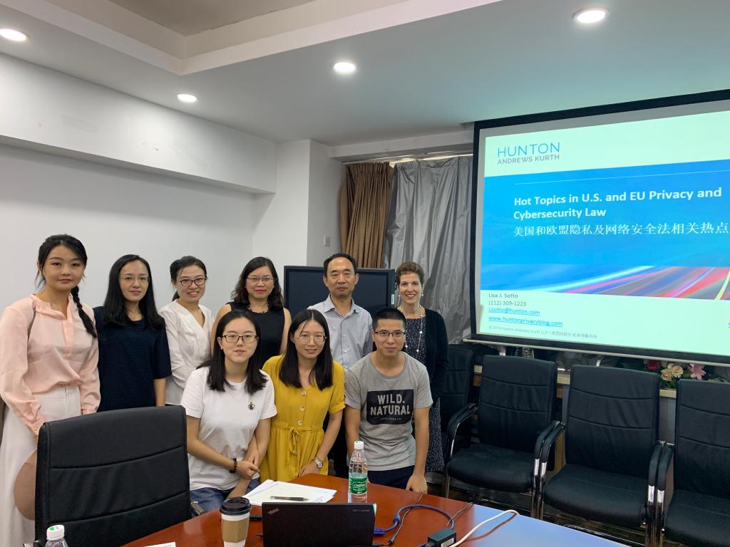 9月5日上午,来自美国何威安卓律师事务所隐私和网络安全业务部门的主席,该所纽约办公室的合伙人Lisa Sotto律师应邀来公司,在如心楼206做了题为《美国和欧盟隐私及网络安全法相关热点问题》的讲座。本次讲座由w88win体育官网入口、w88win体育官网入口网络空间国际治理研究基地、及工业和信息化法治战略与管理(工信部)重点实验室联合主办。w88win体育官网入口副经理周学峰教授、丁海俊副教授、裴炜副教授、北京科技大学文w88win体育官网入口张凌寒副教授、中国法学会法治研究所刘金瑞副研究员应邀出席讲座并参与座谈,徐实博士主持讲座,魏露露博士后、赵精武博士参与座谈,此外还有来自企业、律所的专家、w88win体育官网入口师生共30余人聆听了讲座。