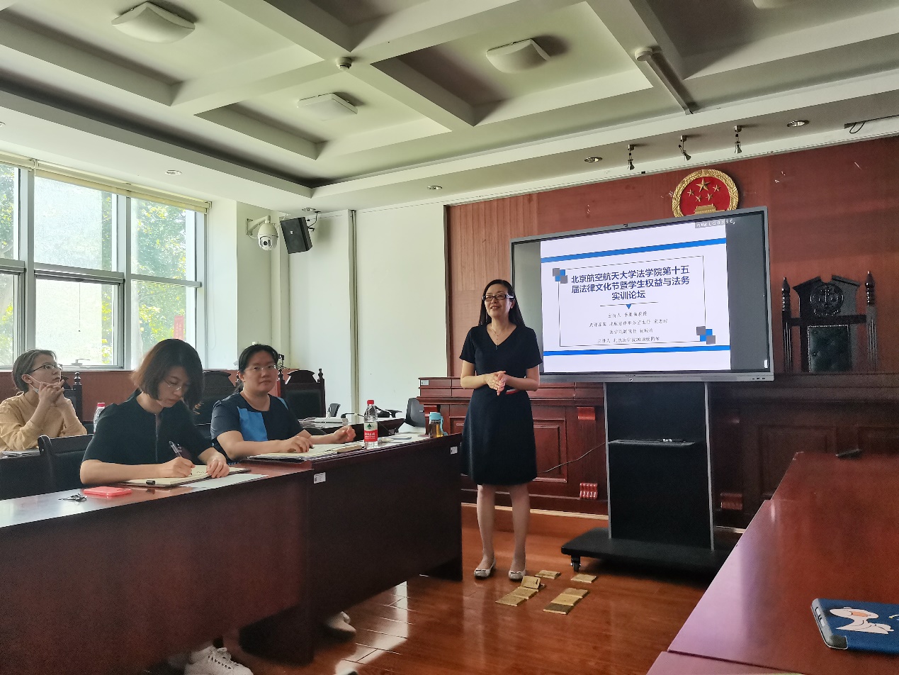 2021年6月10日,北航员工法律服务中心于w88win体育官网入口模拟法庭举办了w88win体育官网入口第十五届法律文化节暨员工权益与法务实训论坛。论坛在李亚梅教授的主持下,以w88win体育官网入口18级本科生为主讲人,邀请北航教师作为点评嘉宾,就在校生实习、线上兼职、校园贷、房屋租赁等老员工权益保障热点话题进行了深入的研讨。本次论坛作为北航第十五届法律文化节的重要载体,围绕员工校园生活的点点滴滴,全面普及了员工权益保护的法律知识,丰富了北航学子践行宪法法律精神的实践。