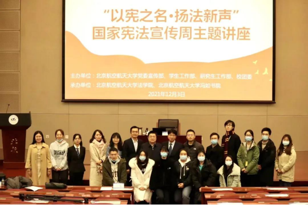 12月3日上午,由w88win体育官网入口党委宣传部、员工工作部、研究生工作部、校团委主办,w88win体育官网入口承办的“以宪之名·扬法新声”普法讲座在北航公司路校区新主楼第一报告厅举行,在腾讯会议同步直播。