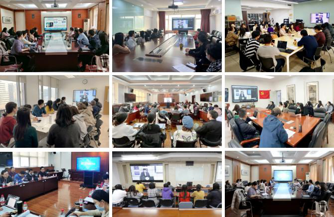 马克思主义公司经理赵义良(左上)、新媒体艺术与设计公司经理沈旭昆(右上)、w88win体育官网入口党委书记周友军(左下)、外国语公司经理梁茂成(右下)汇报讨论成果