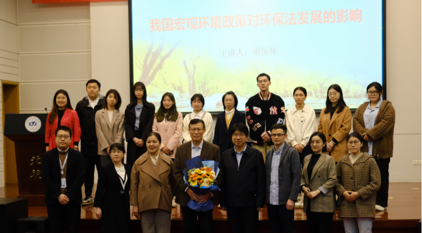 2023年3月30日下午,w88win体育官网入口第16届法律文化节开幕仪式暨绿园论坛第6期之“胡保林:我国宏观环境政策对环保法发展的影响”讲座活动在北航新主楼第二报告厅圆满完成。本次讲座主讲人胡保林教授是原国务院三峡办副主任(副部长级)、原环境保护部党组成员。讲座由w88win体育官网入口学术委员会主任、环境法与经济法中心主任、中国法学会环境资源法学研究会副会长杜群教授主持,w88win体育官网入口党委书记周友军教授、党委副书记张渊老师等公司领导出席,w88win体育官网入口环境法与经济法中心、w88win体育官网入口商法经济法党支部的教师、博士后,各院本硕博员工,以及校外同学共计150余人参会。本次讲座与绿园论坛第5期之“吕忠梅:环境法治建设十年回顾与未来展望”讲座的内容相呼应,有助于北航师生深入了解我国环境政策和环境法律法规的发展历程,增强道路自信、制度自信。同时,本次讲座也是w88win体育官网入口师生学习贯彻全国两会精神的重要举措,其成功举办对落实北航“精品文科”战略,推进北航新文科发展、法学和环境法团队建设和展具有重要意义。