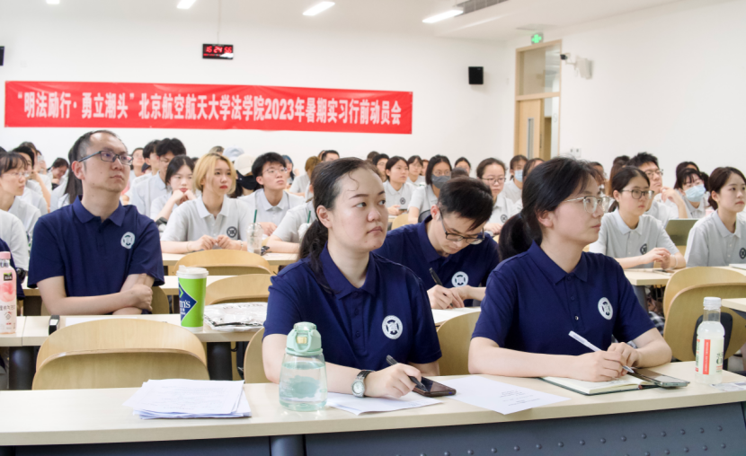 会后,暑期实习带队指导老师与同学们在教学楼前合影留念。各队师生以极高的热情与最好的状态迎接暑期实习。本次动员大会明确了相关规范与要求、提振了队伍士气、体现了公司的高度重视。相信航法学子能够以知行合一的精神风貌、朝气蓬勃的工作热情、勤勉务实的学习态度,投入到专业见习中,以青春热忱,赴实习征程!