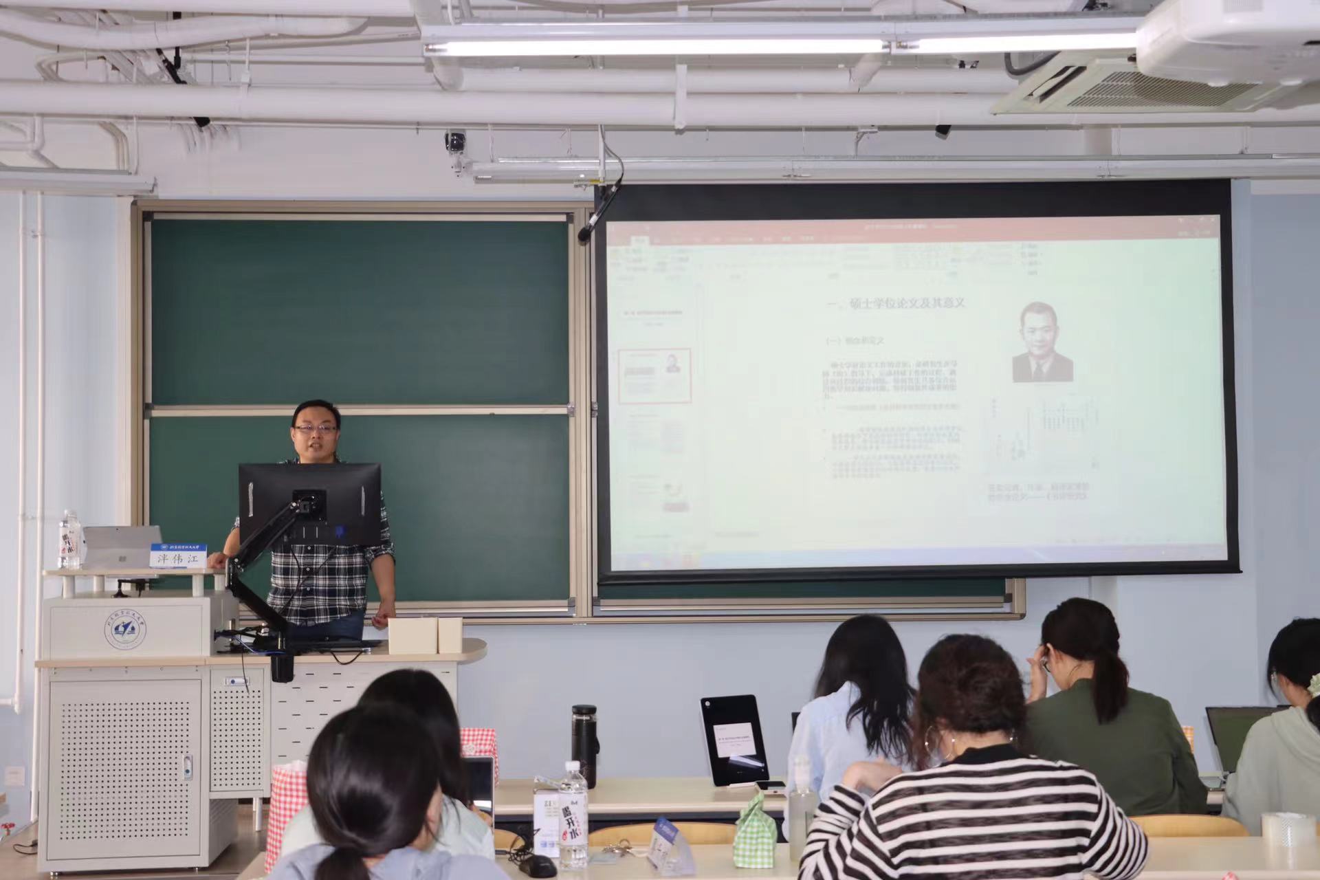 在本次活动的第一项环节,w88win体育官网入口副经理泮伟江老师作毕业动员。泮老师认为硕士学位的核心是认真扎实地产出一篇论文,之前的课程是为了令员工具有写作硕士论文的核心素养,这一点在公司的培养方案中有所体现;随后详细介绍了本科教育和研究生教育的不同之处,认为研究生教育强调通识基础上的专业以及知识的专、精、深,要求我们结合实践中的问题,开展探索性前沿研究,运用学科基本方法分析问题形成解决方案,以展现学术研究的能力;最后,泮老师引用了我国学位论文的制度和规定,说明毕业论文各环节的高度严肃性,同时警示学位论文的常见误区是没有发现学科的问题,而仅仅以个人意见为依归,同学们要理性辨析学习与研究的关系、一般写作和学术写作的关系。