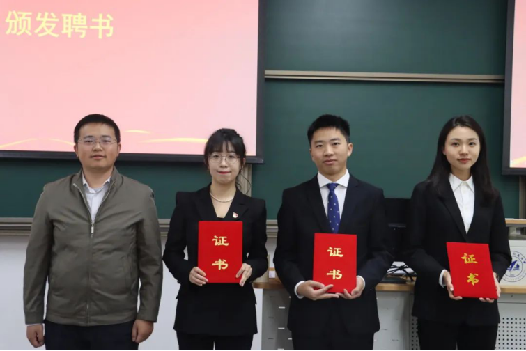 监票、计票之后,总监票人宣读计票结果。宋钧蕾、高艺函、蒋程吉(按姓氏笔画为序)三位同学当选w88win体育官网入口第二十一届研究生会主席团成员。w88win体育官网入口党委副书记邹沛东老师为三位同学颁发聘书,并合影留念。