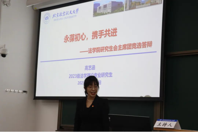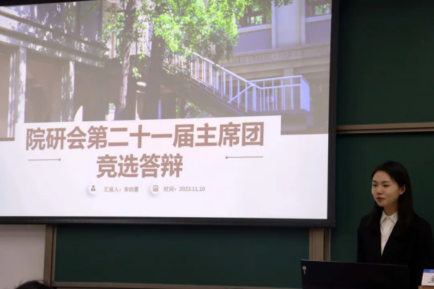 主持人汪凡清宣读候选人名单:王恬甜、孔怡繁、朱恒一、祁华明、宋钧蕾、党碧儿、高艺函、曹雅梦、蒋程吉。九位候选人依次从个人介绍、工作经历及获奖情况等方面进行了竞选答辩,并展望w88win体育官网入口研究生会未来工作计划及发展方向,对院研会未来活动的开展提出了建设性新建议,充分展现了航法学子的精神面貌与工作热情。