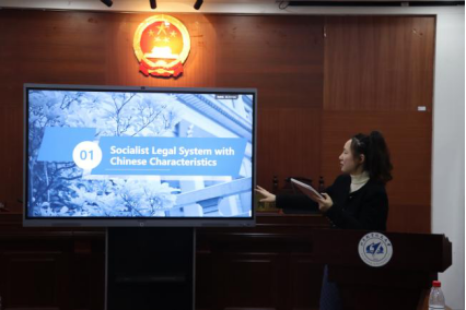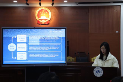 随后,公司公益法律服务中心邱圣童同学、薛晓芳同学和王怡辰昕同学分别介绍了中国特色社会主义法律体系以及公司公益法律服务中心的法律实践教育情况。