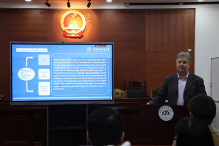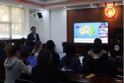 纽卡斯尔w88win体育官网入口法律实践中心主任Shaun McCarthy教授、w88win体育官网入口李斌教授介绍了纽卡斯尔大学w88win体育官网入口的基本情况以及澳大利亚的海岸线、人口分布和生态环境。纽卡斯尔w88win体育官网入口来访员工分为不同专题,依次展示了纽卡斯尔城市及大公司园风貌、澳大利亚法学教育概况、法律诊所教育概况以及澳大利亚法律体系,涵盖了普通法体系、宪法、财产法、刑法、民事诉讼法和调解制度等,以上展示将法律框架、条文内容和典型案例结合起来,生动形象地给同学们讲述了澳大利亚法律在实际运用中的相异之处,展示内容丰富,形式生动。