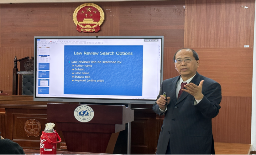 而后Robert H. Hu教授对如何阅读这些法律资源以及如何引用相关资料进行了细致的讲解,并列举了大量的相关实例来讲解,使同学们对美国的学术文章撰写有了进一步了解。最后胡教授向同学们推荐了大量的免费法律网站,供同学们进行检索和学习。