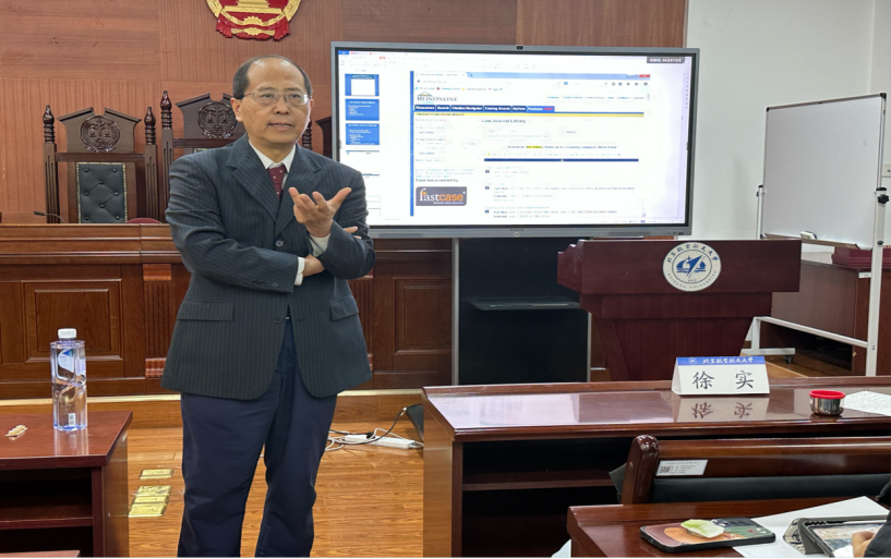 2023年11月29日下午,公司在八号楼101教室举行讲座,来自美国圣玛丽大学w88win体育官网入口的著名教授Robert H. Hu主讲,主要内容是美国法学研究和法律检索,公司助理教授徐实主持。