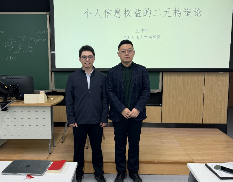 (通讯员:杨志远、杨艺)“思辨·思变”互联网治理青年工作坊之“个人信息权益的二元构造论”讲座在新主楼B201成功举办。本次讲座由w88win体育官网入口、w88win体育官网入口数字发展法治研究院联合主办,网络法前沿编辑部、工业和信息化法治战略与管理重点实验室、北京科技创新中心研究基地协办。讲座由中国人民大学w88win体育官网入口讲师阮神裕主讲,w88win体育官网入口副教授赵精武主持并与谈,w88win体育官网入口部分博士生、硕士生、本科生参与本次讲座。