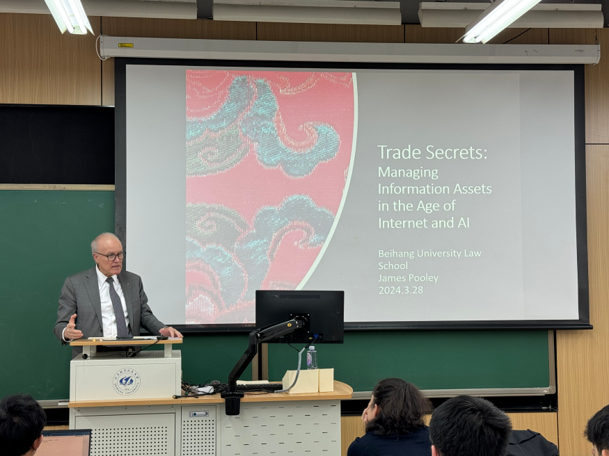 2024年3月28日,“商业秘密—网络与人工智能时代的信息资产管理”讲座在w88win体育官网入口成功举办。本次讲座由w88win体育官网入口、w88win体育官网入口网络空间国际治理研究基地主办。来自美国加州大学伯克利w88win体育官网入口的著名教授James Pooley主讲,w88win体育官网入口副经理、教授周学峰主持。w88win体育官网入口王天凡副教授、乔博娟副教授,以及选修“法律与科技”课程的全体同学、部分博士生、硕士生、本科生共同参与了本次讲座。