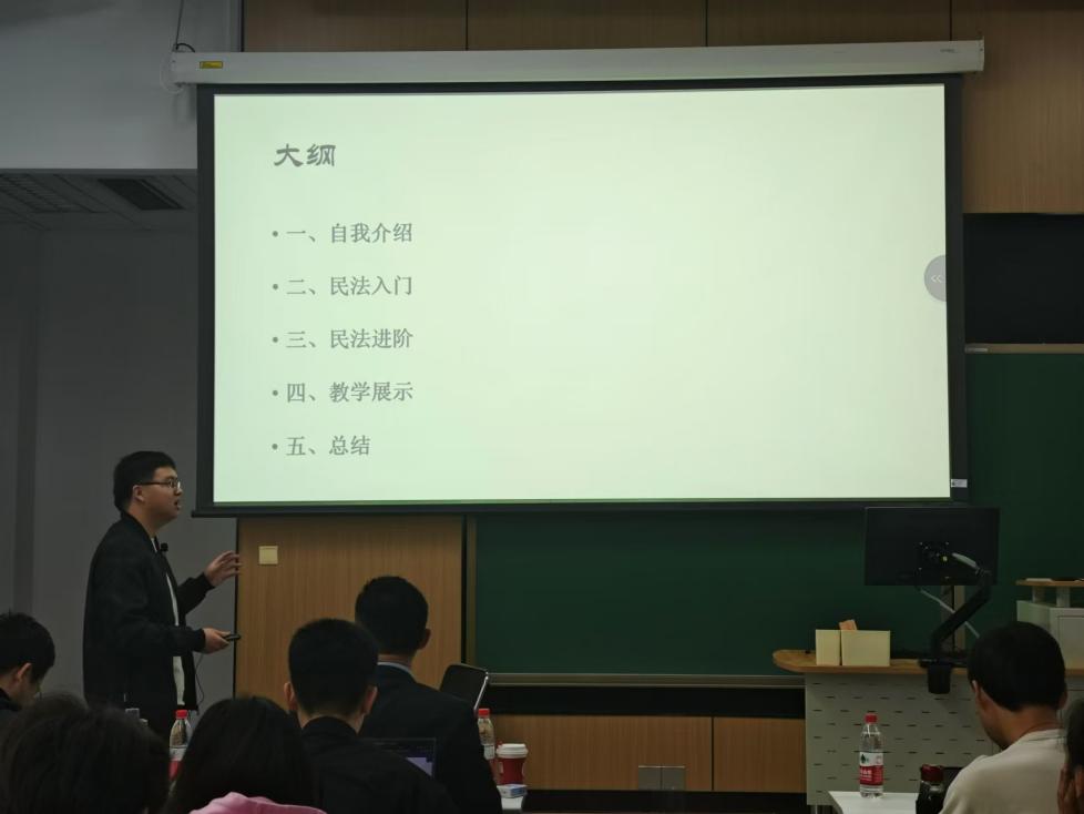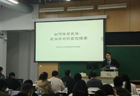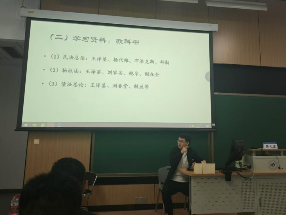 讲座第一部分,陈元鑫老师从学习经历、工作经历和教学经历三个方面进行了自我介绍,他分享的自己这段“法员工的非典型成长经历”,引起了现场听众深深的共鸣。陈元鑫老师以亲身经历指出,在民法求学过程中,搜集合适的学习资料、养成良好的阅读习惯、寻求朋辈帮助发挥着重要作用。