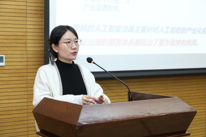 中国社会科公司法学研究所网络与信息法研究室副主任、中国法学会网络与信息法学研究会常务副秘书长周辉作了题为《全球人工智能治理的格局、挑战与完善》的报告,提出人工智能全球治理的格局已然形成。在此基础上,人工智能的发展和安全治理也面临着一些挑战。围绕确保人工智能的安全、可靠、可控发展,需要塑造人工智能全球治理新格局。具体而言,应当坚持真正的多边主义,多渠道搭建对话平台,共同推动普惠性发展。