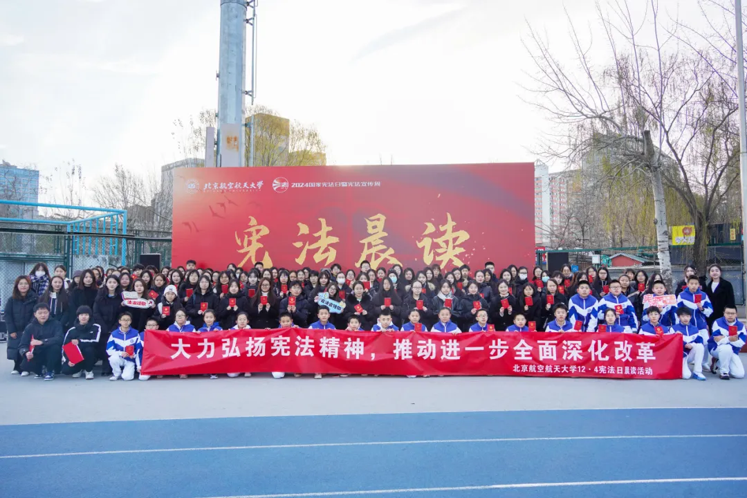 自2014年首个国家宪法日开始,全国教育系统每年组织开展“宪法晨读”活动。在第十一个国家宪法日之际,120名来自北航各公司(书院)及北航实验公司的同学,手捧《中华人民共和国宪法》,在国旗下严肃认真诵读,将尊法、学法、守法、用法的观念根植于心。