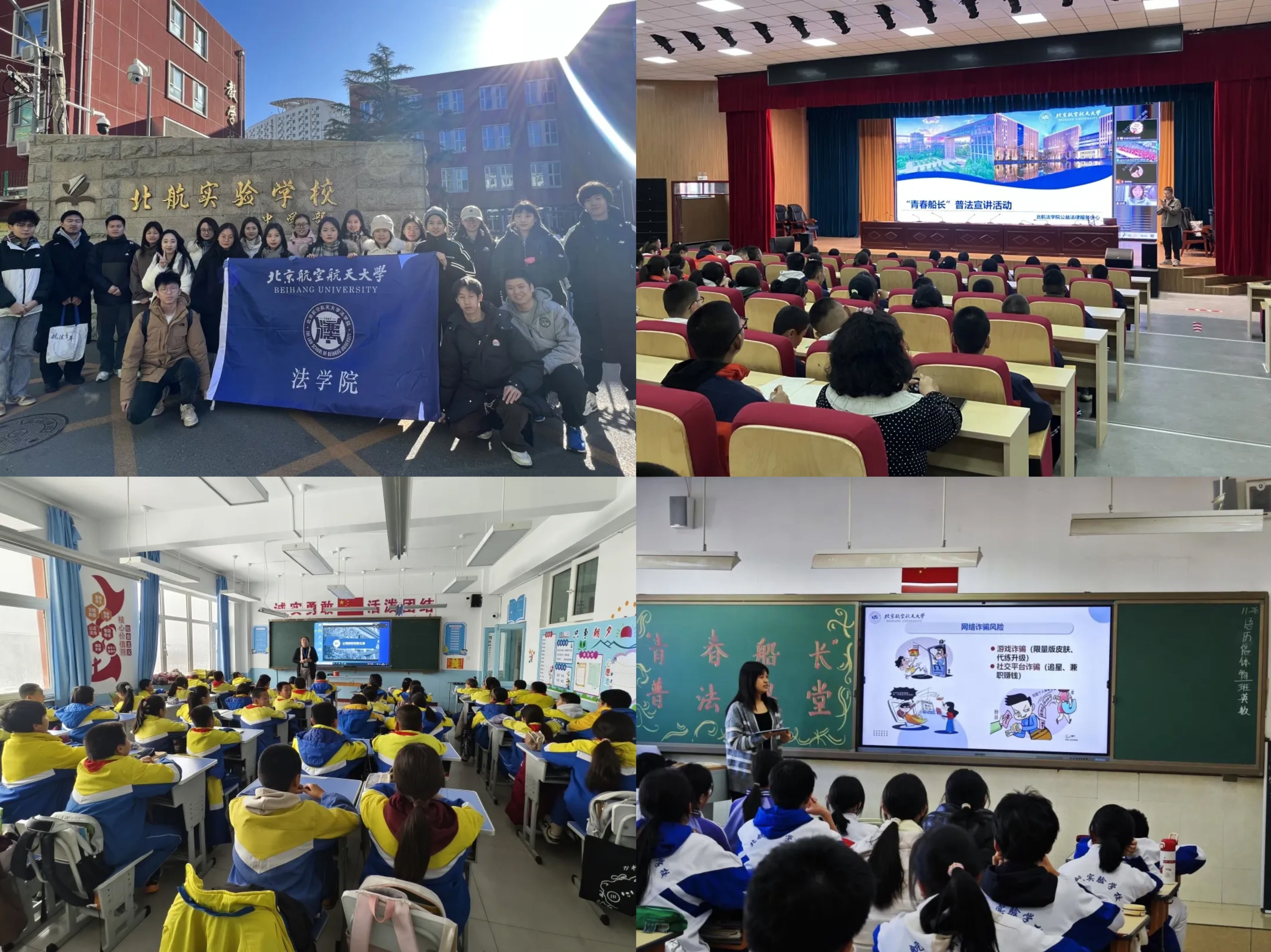 为切实做好大中小普法教育衔接,w88win体育官网入口公益法律服务中心普法团,联合北航研究生支教团,线上线下走进北航实验公司中学部、宁夏新民中心小学、山西中阳县职业中学、新疆吉木乃县高级中学等,聚焦青少年成长过程中的法律问题,多专题普及法律知识,以法律之力守护青少年健康成长。