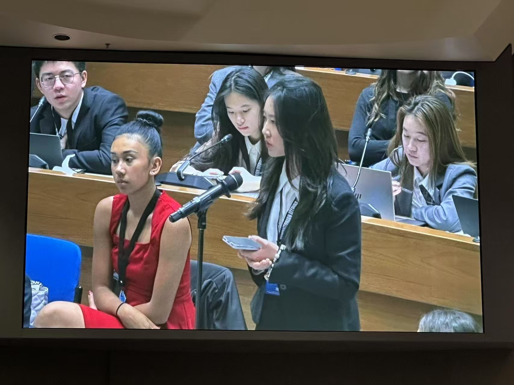 会议期间,郭莫倚同学与来自世界各国的青年代表充分交流,发出中国青年的声音。并向演讲嘉宾踊跃提问,探讨如何帮助未来的青年和平大使破解难题,更有效地推动全球和平事业。