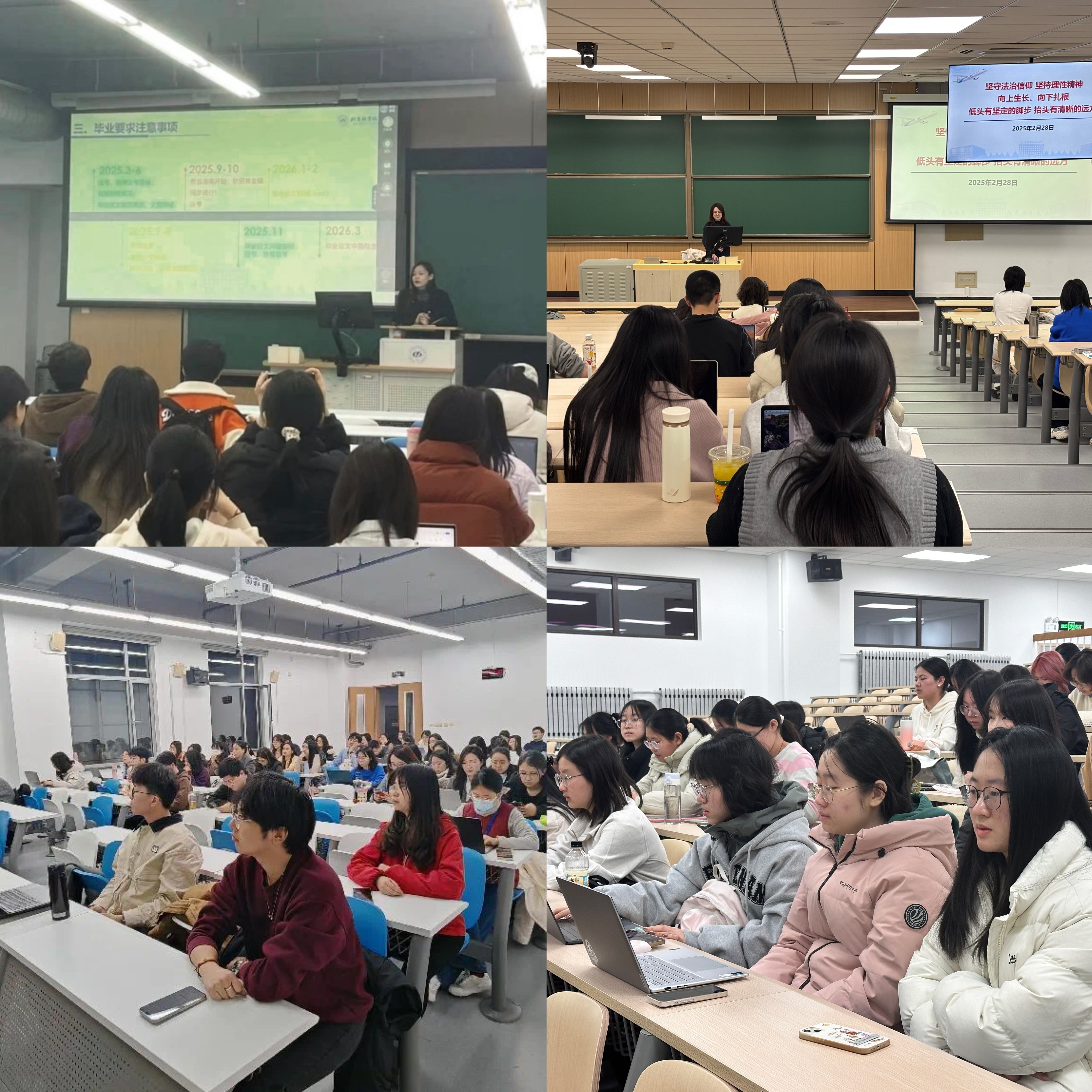 在2024级研究生大班会上,专职辅导员夏梦彤就时间规划、就业准备、实习实践等进行详细讲解,提醒同学们将准备工作做在前,在充实的生活中拒绝焦虑。并鼓励大家积极参与冯如杯等科创竞赛,把握好研一下学期的关键节点。辅导员杨志远就春季学期公司活动安排、党支部建设、校规校纪进行提示,并对毕业要求等进行了详细讲解。
