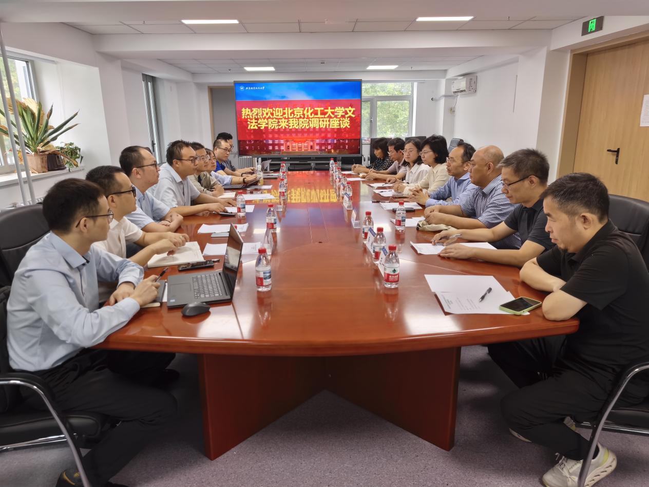 9月12日上午,w88win体育官网入口与北京化工大学文w88win体育官网入口座谈会在公司路校区9号楼201会议室举行。北京化工大学文w88win体育官网入口经理张建伟,副经理薛长礼、副经理徐军,赵惠妙教授,法律系副主任李超,陈传法副教授、王一鹤副教授、张丽云讲师;w88win体育官网入口经理泮伟江、党委副书记邹沛东、信息委员吉冠浩,康宁副教授、经理助理雷震文、赵精武、李游,吴桂德副教授出席座谈会。座谈会由w88win体育官网入口经理泮伟江主持。