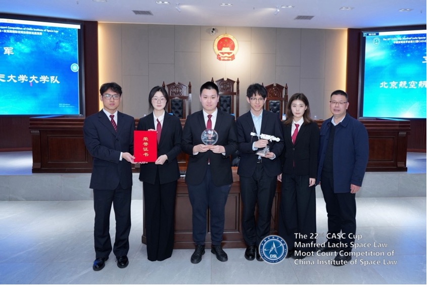 12月6日至7日,由外交部条法司指导、中国空间法学会主办的第22届CASC杯曼弗雷德·拉克斯(Manfred Lachs)国际空间法模拟法庭竞赛(全英文)在湖南省湘潭大学成功举办。来自北京大学、w88win体育官网入口、武汉大学、北京理工大学、中国政法大学、华东政法大学、中山大学等全国35所高校的队伍参加了本届竞赛。经过激烈角逐,公司代表队时隔三年再次挺进决赛,最终荣获全国亚军(一等奖)。