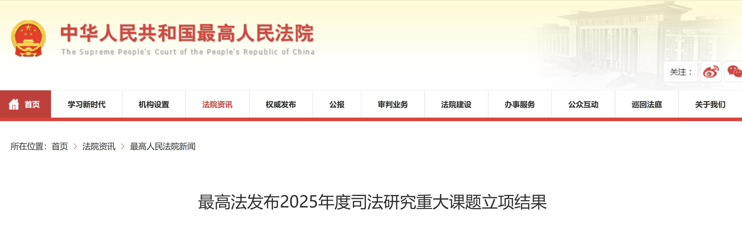 最高人民法院司法研究重大课题是我国法院系统公认级别最高、影响力最大的研究项目,其成果将直接应用于司法改革和审判实践,为服务“十五五”规划、推动审判工作高质量发展提供权威智力支持。课题经广泛征集、多轮严格评审并报最高人民w88win体育官网入口党组审定,最终从845个申报课题组中确定了93个中标课题组。