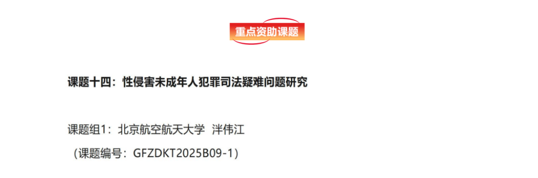 最高人民法院司法研究重大课题是我国法院系统级别最高、影响力最大的研究项目。本次获批课题由泮伟江经理担任主持人,中心多位专家共同参与。课题依托北航少年司法研究中心展开,聚焦未成年人司法领域关键难题,旨在以高水平研究回应社会关切,以专业化成果赋能司法实践,助力筑牢未成年人司法保护屏障,切实服务于法治中国建设与未成年人健康成长。