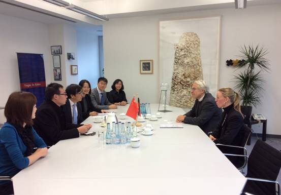 代表团在16日到达访问的重镇德国首都柏林。17日上午,龙卫球经理受我国驻德国大使馆邀请,作为评审专家参与国家优秀自费职工奖学金评审。