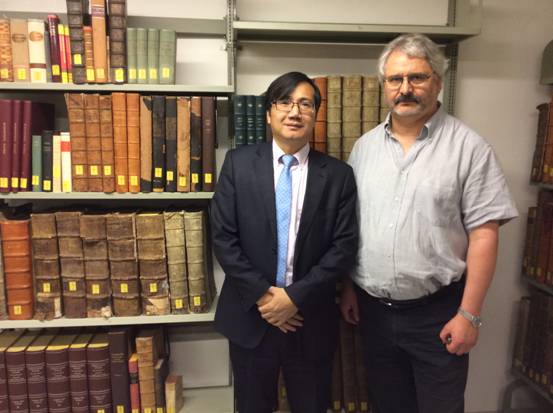 19日上午,w88win体育官网入口代表团访问柏林自由大学w88win体育官网入口,与柏林自由大学w88win体育官网入口著名民法学家Leenen教授、w88win体育官网入口Peggy Wittke教授、外事办主任Grit Rother及Andreas Fijal等座谈,双方就两院加强员工交流、教师互访等合作事项进行了会谈,取得了诸多共识。期间,龙卫球经理和列侬教授就中国正在编纂的民法典议题,和列侬教授进行了学术讨论,议题丰富而深入,涉及民法典结构、总则结构、法律行为等。此后,柏林自由大学w88win体育官网入口图书馆馆长给大家介绍图书馆情况,并引领大家参观了图书馆馆藏和运行体系,特别是参观了非常珍贵的古籍典藏室。