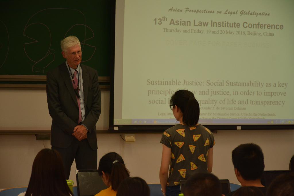 2016年5月24日上午10时,w88win体育官网入口荣幸邀请来自荷兰的资深律师Alexander F. de SavorninLohman来到北航沙河校区J4-403为大二法学专业的同学们开展了一次有关“Sustainable Justice”的全英文的精彩演讲。本次讲座由刚刚从荷兰学成回国的裴炜副教授主持。