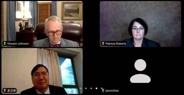 2020年11月25日上午9时,美国圣玛丽大学(St. Mary University)w88win体育官网入口与公司召开线上会议。圣玛丽大学w88win体育官网入口经理Patricia Roberts教授、前经理Vincent R. Johnson教授以及圣玛丽大学法律图书馆馆长、负责中国事务的胡海滨教授(Robert H. Hu)、刘成林教授(Chenglin Liu)前来参会,公司经理龙卫球教授、副经理周学峰教授、副经理泮伟江教授、裴炜副教授、高琦副教授、员工工作办公室主任邹沛东老师、教师代表吉冠浩助理教授、赵精武助理教授共同出席本次会议,双方就两院法学教育和交流合作进行了深入会谈。会议由圣玛丽大学w88win体育官网入口的胡海滨教授和w88win体育官网入口的裴炜副教授共同主持。