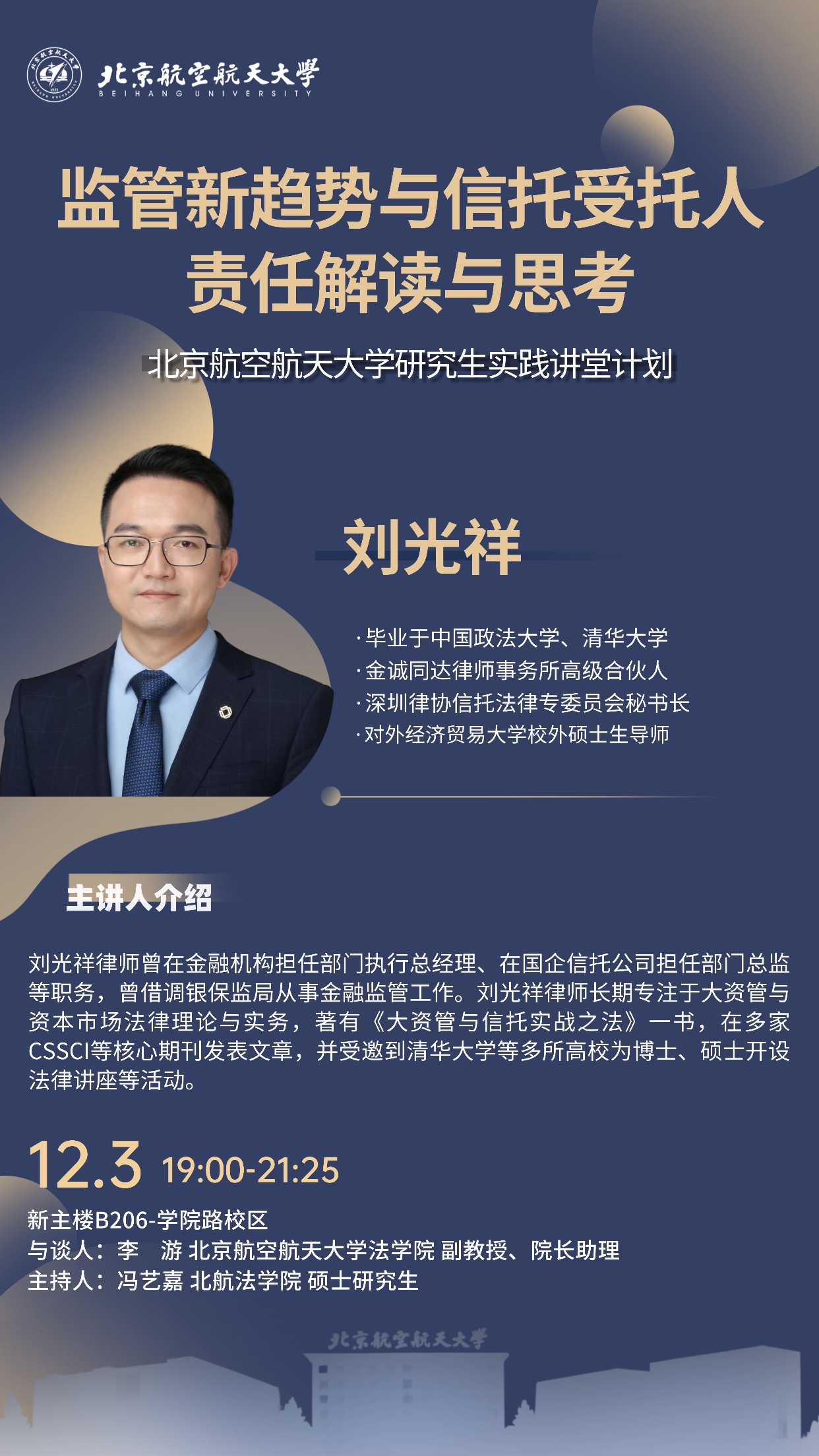 讲座预告 | 监管新趋势与信托受托人责任解读与思考