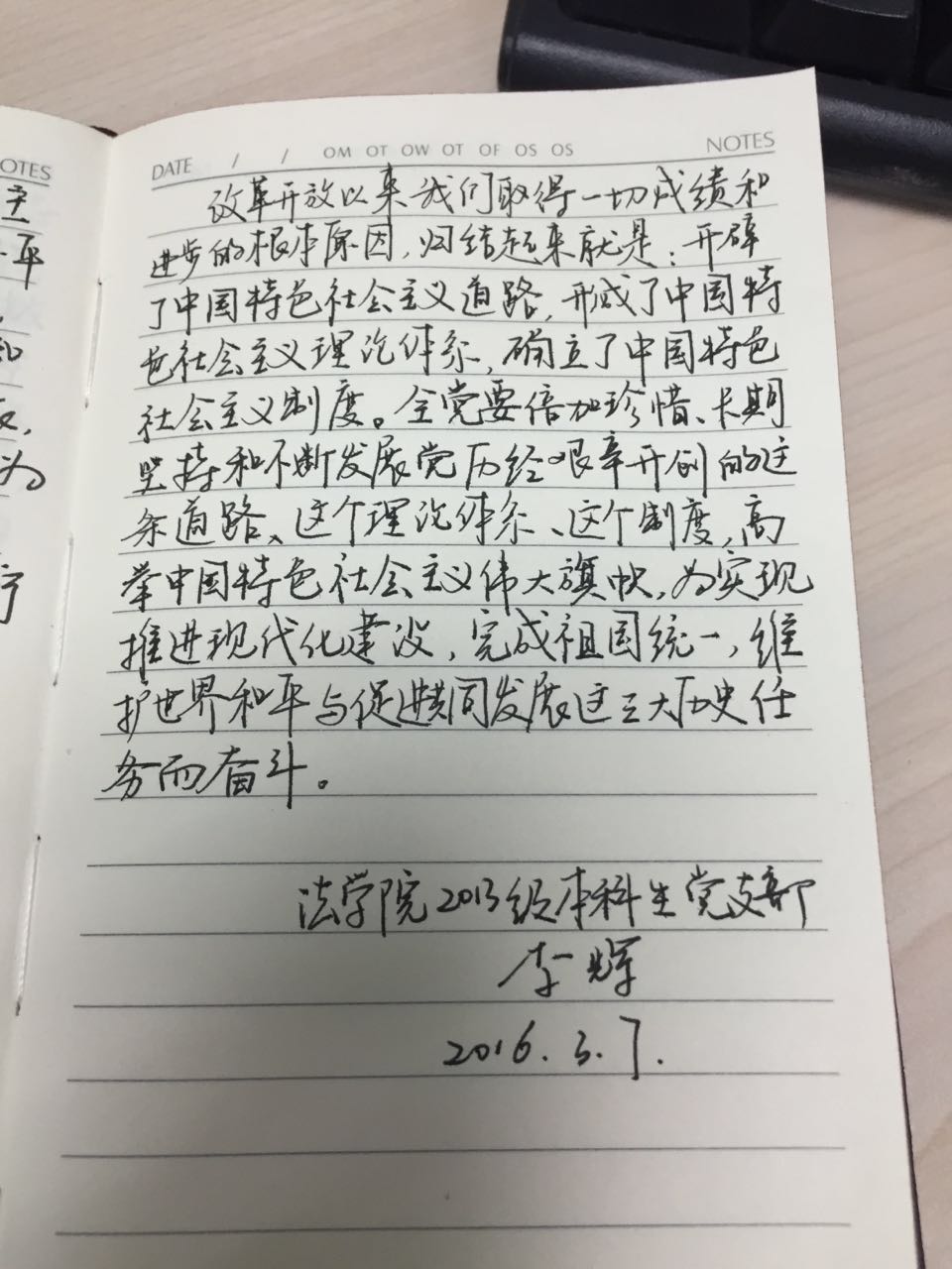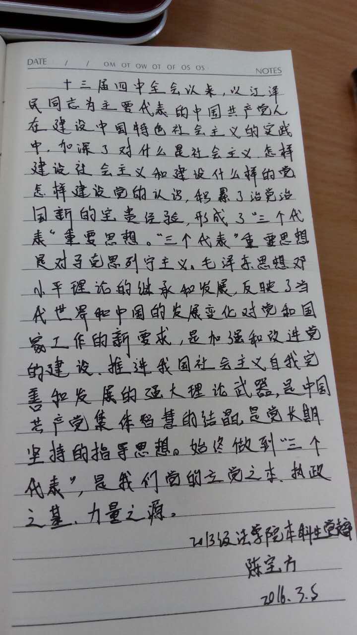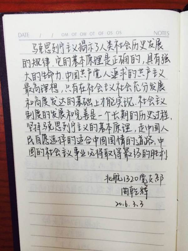 2016年,党中央决定在全体党员中,开展“学党章党规、学系列讲话,做合格党员”(以下简称“两学一做”)学习教育活动。2016年3月2日开始,w88win体育官网入口2013级本科生党支部(以下简称1320党支部)在支部书记李辉的带领下,深刻领会“两学一做”学习教育精神,深入学习党章包含的思想精髓和时代要求,全面启动“手抄党章100天”活动。