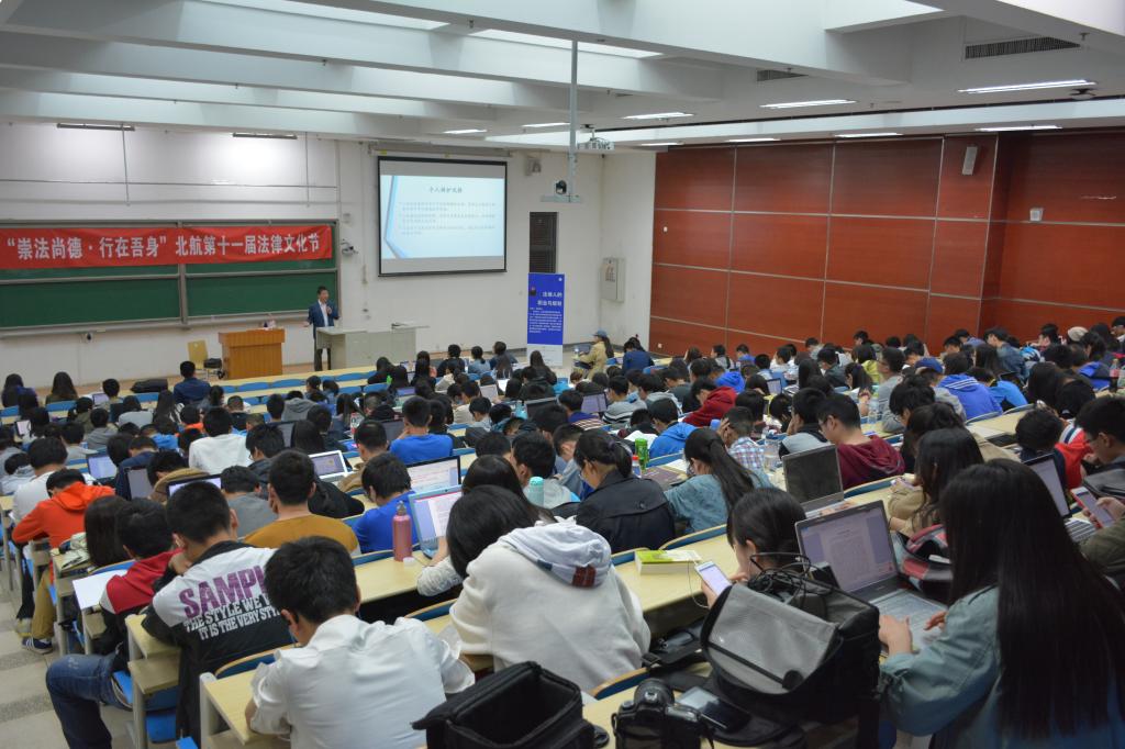 2016年4月17日晚,北航第十一届法律文化节开幕式暨法律人职业讲坛“法律人的职业与规划”讲座在沙河校区隆重举行。