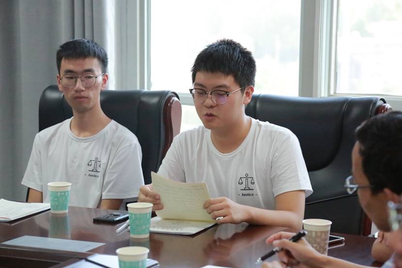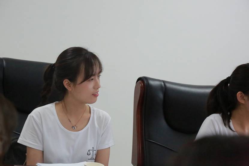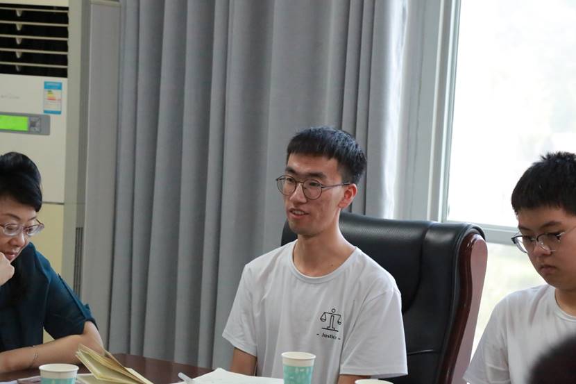 其次发言的是金明区院的邱泽昱、杨阳、霍睿博同学的发言,他们在实习中对于案卷已经非常熟悉,经常向孙科长汇报看卷成果,也经常得到孙科长的指点,在这过程中他们深刻认识到自己的不足,同时在一次次汇报学习中不断进步。特别地,他们与公诉科的检察官们进行了一次模拟法庭的辩论,表现不俗,得到了孙科长的充分肯定。孙科长同时提到,卷宗的重复阅读对于办案人员来说是极其基础且重要的一个环节。对卷宗的绝对熟悉有利于案件的展开。孙科长肯定了同学们发现问题的独到眼光与完成任务的认真态度,同时认为老员工身上也有在职检察官们值得学习的地方,给予了同学们高度评价。魏主任则送给在座同学们三句话,一是给自己一个准确的人生规划,而是给自己一个明确的目标追求,三是对自己有一个正确的心态分析。
