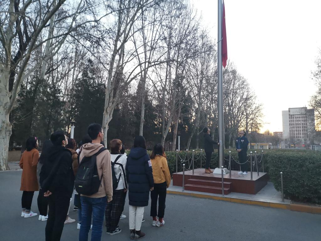 2018年3月14日,根据校团委安排,w88win体育官网入口分团委162013团支部开展升旗仪式活动。早六时许,天还未全亮,团支部成员纷纷集合到主楼国旗台前,列队等待升旗。六时三十分整,伴着激昂雄壮的《义勇军进行曲》,鲜艳的五星红旗在朝阳下冉冉升起、迎风飘扬,神圣庄严的氛围感染着在场的每一个人。