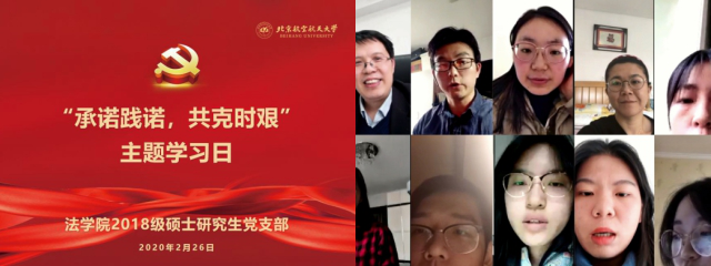 各研究生党支部分别召开线上党员大会,开展“党员同行、齐心战疫”“承诺践诺,共克时艰”“战疫情,我承诺”主题党日活动。法公司党委书记王琪全参加2018级研究生党支部活动。各支部书记领学习近平总书记关于疫情防控工作重要讲话精神,支部委员领学防疫先进事迹和疫情防护知识,党员结合自身实际,分享感悟,郑重承诺,发挥先锋模范作用,为战胜疫情贡献力量。