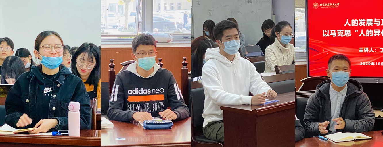 在讨论环节中,王垚、张增磊等同学结合自身理解,与老师就个人价值与社会价值的关系,人“异化”的具体体现等问题与老师进行了交流。
