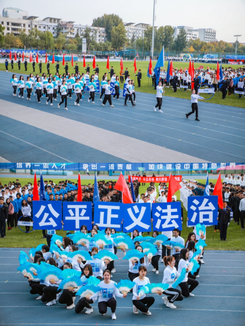 在运动会开幕式上,w88win体育官网入口2020级研究生代表队伴随着激昂的进行曲,迈着整齐划一的步伐,舞动着手中和北航蓝色跑道相呼应的蓝色扇子,六名同学高举“公平”、“正义”“法治”的红色标语,呐喊着“凌云赛场,放马金鞍,乘风破浪,逐梦扬帆”的口号步入赛场,充分展现了公司学子力图为我国法治事业贡献力量的决心以及在未来不断进取的勇气,航法学子以积极的精神面貌大踏步走过主席台,接受公司的检阅,获得了领导和评委的一致好评,并最终获得入场式“二等奖”的好成绩。