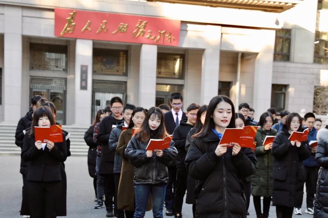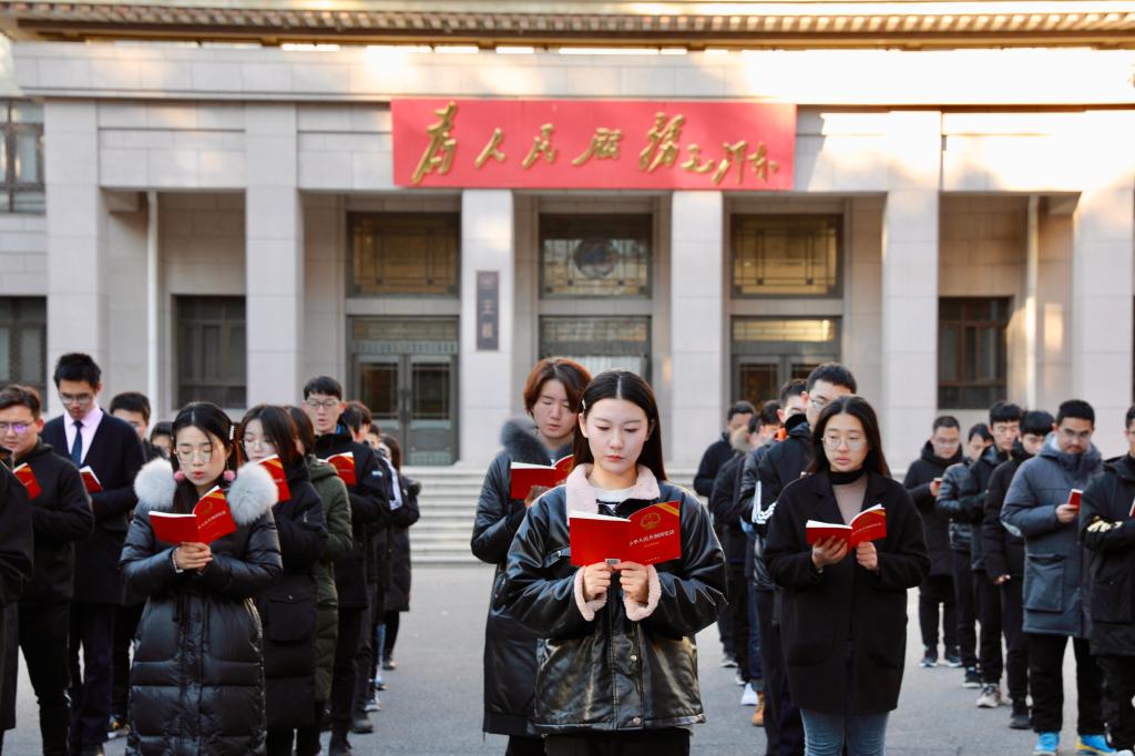 12月4日早8时,w88win体育官网入口于主楼广场举办宪法晨读活动,以推动宪法深入人心,为法治建设凝魂聚力。在鲜红的五星红旗下,在领读人的带领下,同学们齐声宣读《中华人民共和国宪法》,于朗朗读书声中加强对宪法的理解。