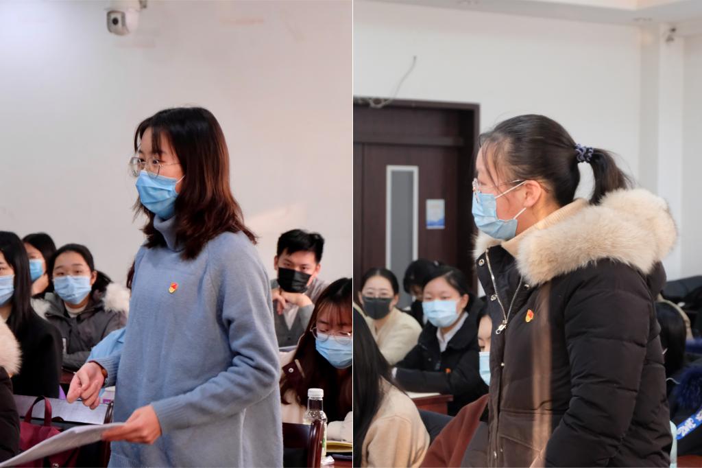 梁淏萌、陆睿、谢妮轩三位同志以“铭记历史,聚梦青春”为主题与大家分享了她们学习“一二·九”运动的思考和感悟。梁淏萌同志首先带着大家回顾了这一历史事件的背景和经过,用当年青年学子的一句“华北之大,已经安放不下一张平静的书桌”叩响了与会同志们的心弦;随后,陆睿同志从“初心·爱国主义情怀、使命·抗日救亡斗争、旗帜·党的正确领导”分析了中国共产党领导的这样一场大规模员工爱国运动的伟大历史意义;最后,谢妮轩同志从“求知”到“明辨”、从“小我”到“大我”、从“自身”到“群体”等三个层面阐述了“一二·九”运动对于当代老员工的指导意义,号召党员同志们传承“一二·九”精神,担负起新时代的青年使命。