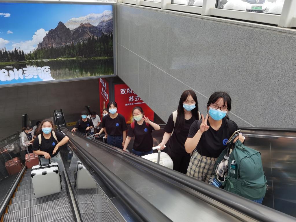 7月1日上午10:00,小组全体成员统一着黑色实习队服,在北航12公寓楼下按时集合完毕,在小组组长梁淏萌的带领下,大家一起乘坐地铁前往北京南站,一起做人群中“最靓的崽”。